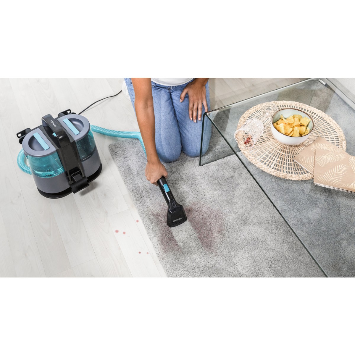 If you are looking for a powerful and versatile vacuum to keep your upholstery, carpets, and mattresses spotless, the Cecotec Conga 4000 Carpet & Spot Clean XL is the ideal choice. With 400W of power, this equipment combines spraying, cleaning, and suction in one product, ensuring effective removal of dirt and stains.