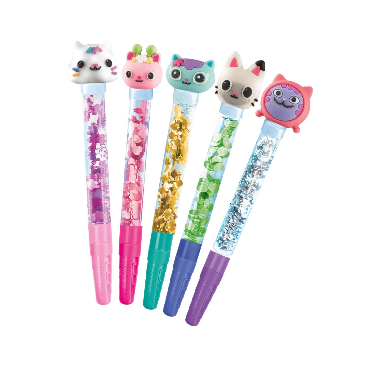 The included work table keeps all the accessories organized and accessible, allowing for the customization of each pen with total comfort. The five pens come with their respective Gabby characters, creating visually appealing combinations that invite experimentation with different styles.