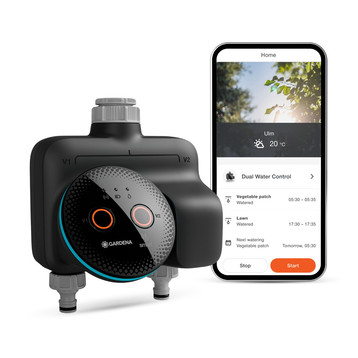 With the help of GARDENA, the smart dual irrigation programmer includes an integrated data-driven programming assistant. It uses real-time weather data and a plant library to analyze the amount of water needed. With this information, the system automatically adjusts watering schedules for plants and lawns, ensuring efficient and balanced irrigation.