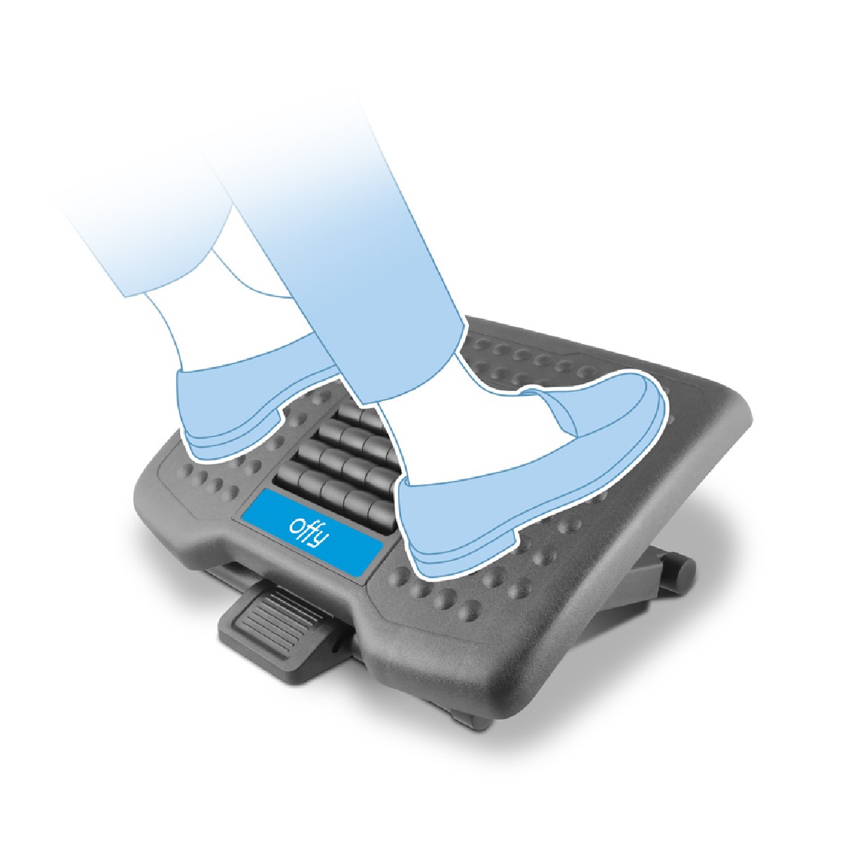 The base incorporates rubber components that firmly secure the footrest to the surface, preventing slipping. Fully independent and portable, the Offy Roko adds immediate comfort to your workstation, whether you are at home or in the office.