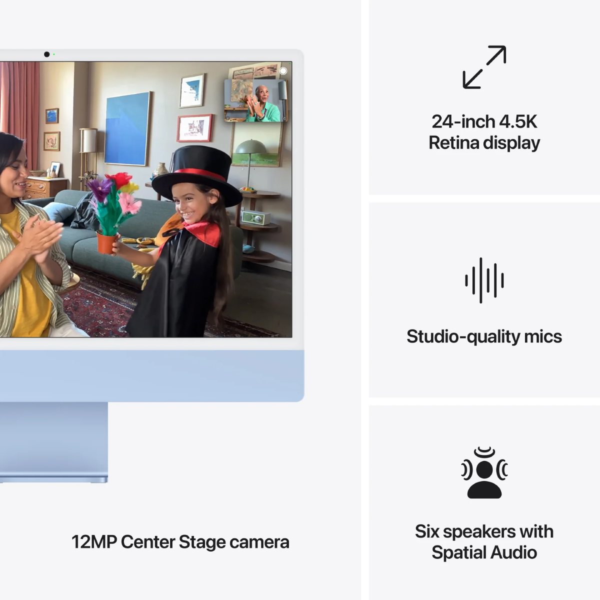 O ecrã Retina 4.5K de 24 polegadas proporciona 500 nits de luminosidade e até mil milhões de cores.