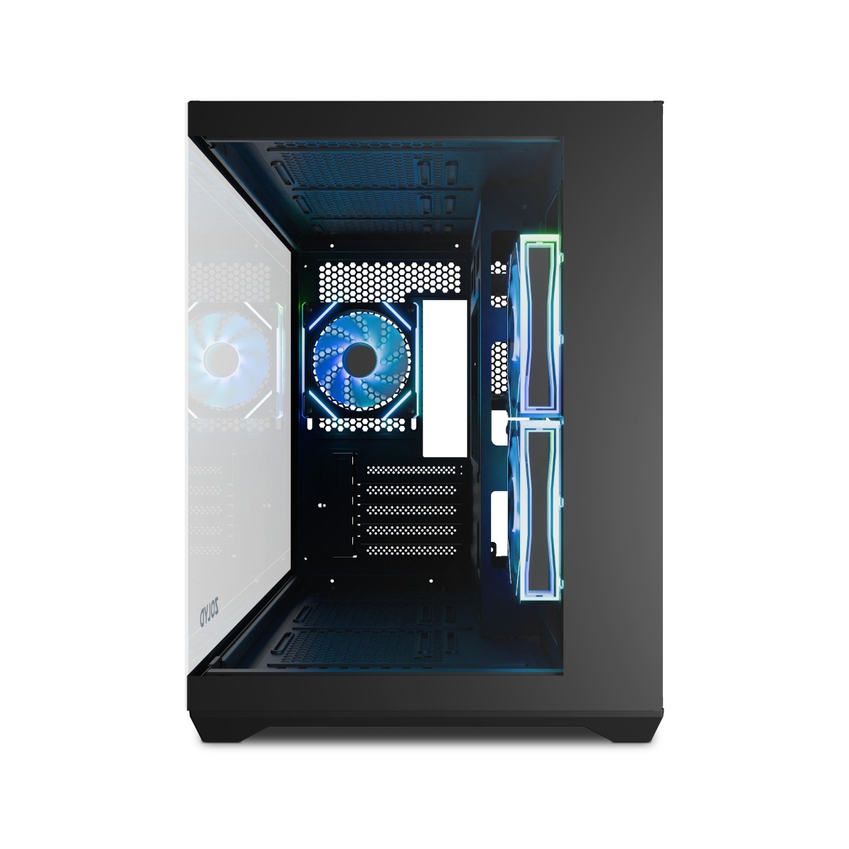 Projetada para manter o sistema sempre bem refrigerado, esta caixa suporta até nove ventoinhas e já inclui três ventoinhas ARGB pré-instaladas. Também é compatível com radiadores de refrigeração líquida até 360 mm, garantindo temperaturas estáveis mesmo em utilizações mais exigentes.
