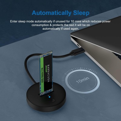 A Docking Station SSD USB-C é alimentada diretamente pela porta USB, não necessitando de uma fonte de alimentação externa. Além disso, possui um LED de status para monitorização e um botão de ligar/desligar para maior conveniência no uso diário.