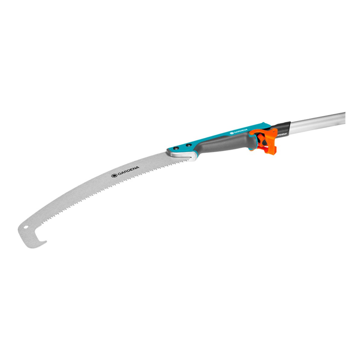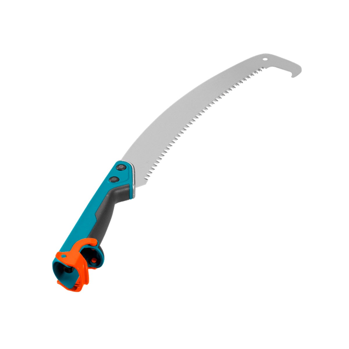 Graças à Serra de Poda GARDENA combisystem 300 P, curva, com um comprimento de lâmina utilizável de 300 mm, pode serrar ramos com elevada eficiência. A serra de tração possui dentes de precisão com afiação tripla. Serra com precisão com uma ação de corte suave e um alto desempenho de corte com pouco esforço. A afiação endurecida por impulso mantém a lâmina da serra afiada por muito tempo. É cromada, protegida contra a corrosão e tem uma longa vida útil. O gancho integrado na ponta da lâmina curva facilita a extração dos ramos serrados. Também o protege contra o escorregamento com a serra e facilita a tarefa de serrar.