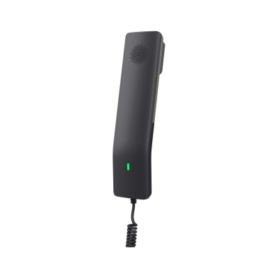 Com um design compacto e moderno o Grandstream GHP611 apresenta-se como um dispositivo discreto e eficiente para qualquer espaço de trabalho a sua construção robusta garante durabilidade mesmo em ambientes de uso intenso enquanto os acabamentos em preto proporcionam uma aparência profissional que se adapta a diferentes tipos de escritório o layout dos botões é intuitivo e a tela LCD oferece informações claras e visíveis sobre as chamadas